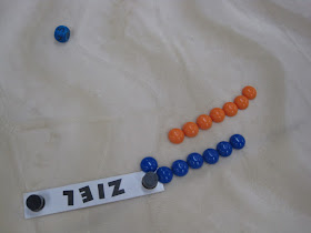 ダイスを使って進みたい目を決定して一斉に公開します。バッティングしたら一歩も動けません。進めるイモムシはしっぽからコマを1つずつ頭に移動させることで進みます。